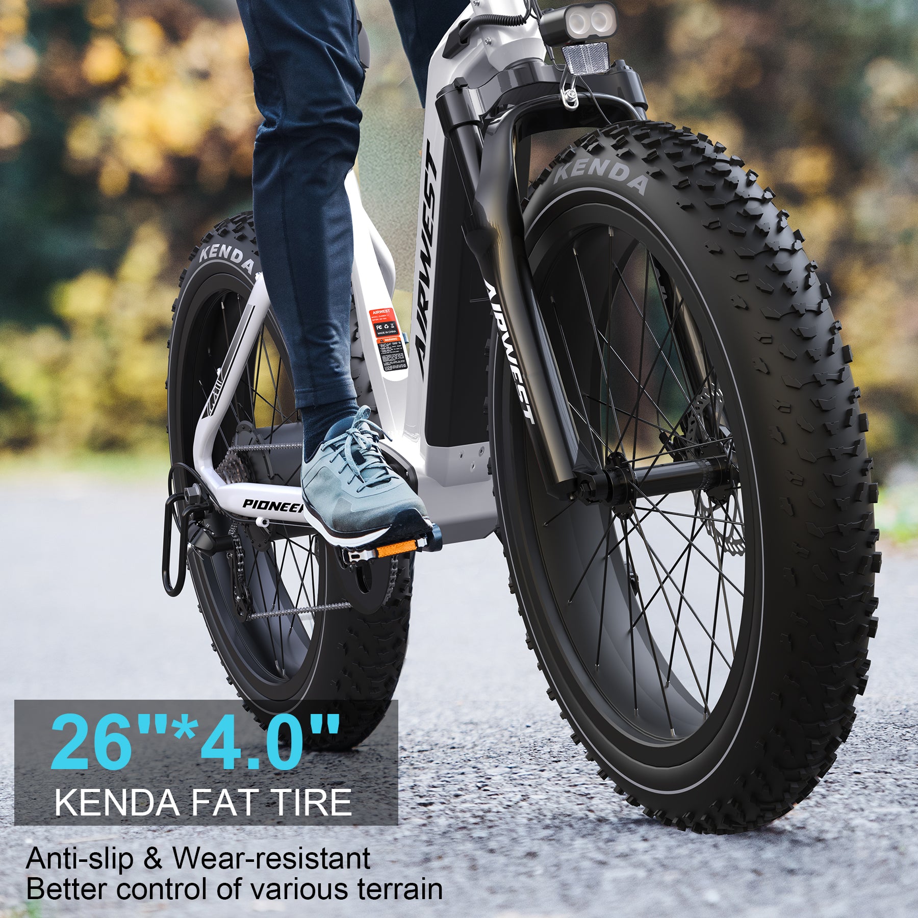 The 26*4-inch Kanda fat tire provides excellent grip and a comfortable riding experience, whether it is a rugged road or a city street. The powerful hydraulic disc brake ensures that you can stop quickly and smoothly when riding at high speed, improving riding safety.